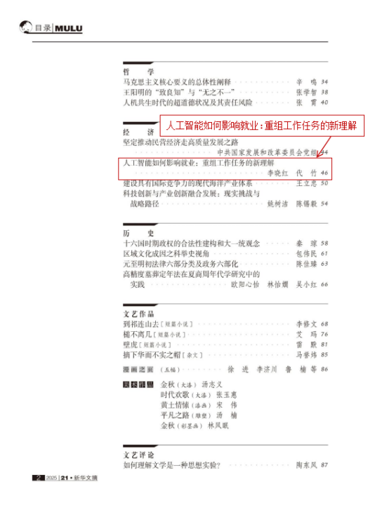 本文基于任务偏向型技术变革假说,通过分析人工智能在技术—经济逻辑下的“嵌入式”应用特征,提出对其影响就业的理解应从“替代工作岗位”转向“重组工作任务”。具体而言,这种重组表现为“4R”:替代操作型和认知型常规工作任务、补充认知型非常规工作任务、保留操作型非常规工作任务、创造更复杂高级的新工作任务。在此过程中,人工智能会带来不同程度的挑战,包括引发结构性失业、技能分化加剧、重点群体技能转型困难等问题。为此,应建立以人工智能创造工作任务为导向的就业促进机制,构建在任务层面与人工智能协同发展的就业支持体系,实施支持重点群体技能转型的就业保障政策。