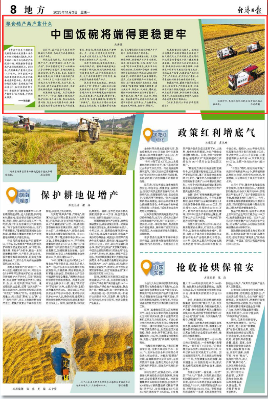 把藏粮于地、藏粮于技战略落到实处,让粮食生产的根基更牢、让粮食生产插上科技的翅膀,让我们的饭碗主要装中国粮,中国饭碗将端得更稳更牢,农业强国建设和现代化强国之路也将更加行稳致远。